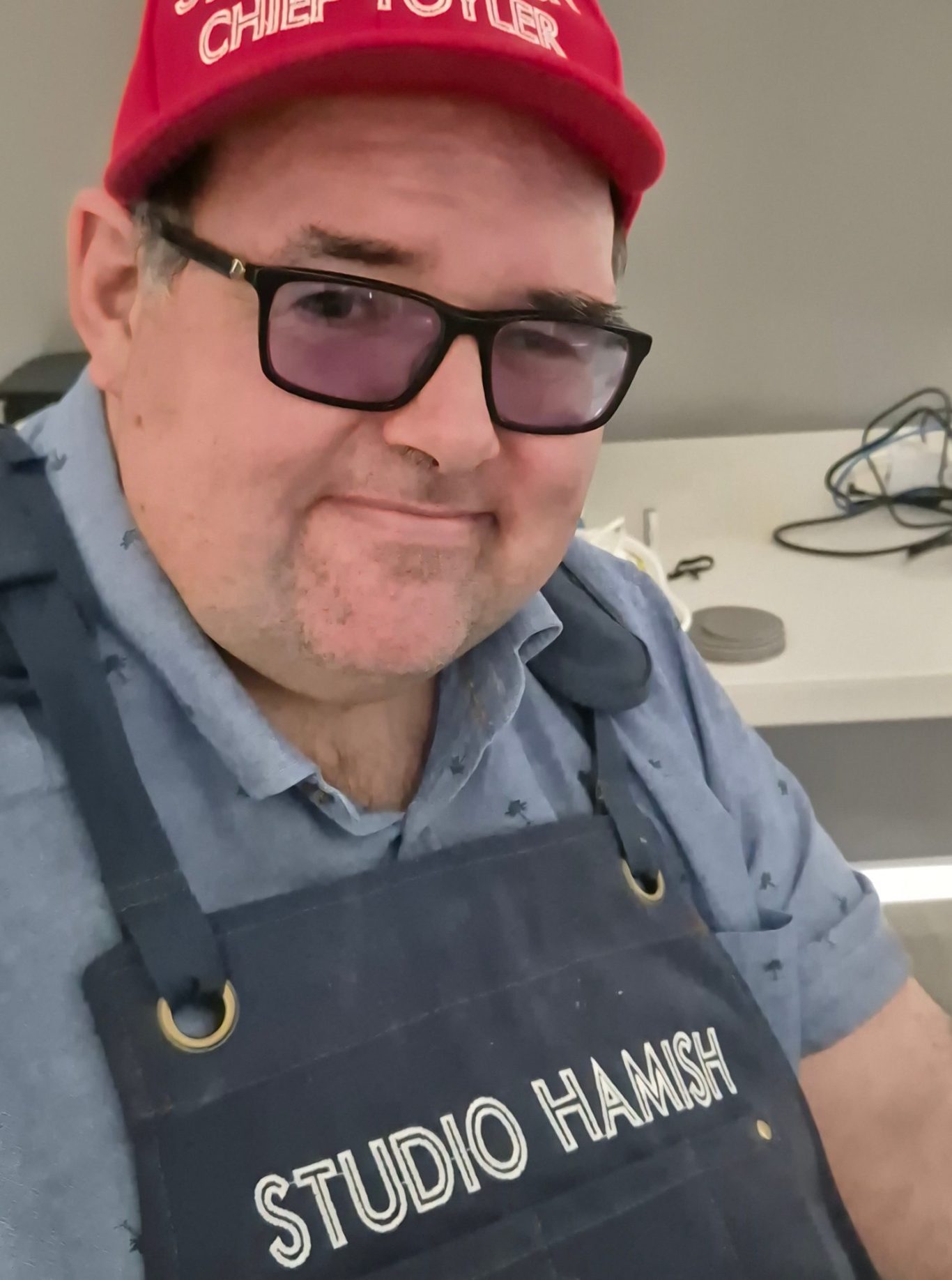 HAMISH HAS DEVELOPED A LOVE OF HANDS-ON MANUAL ENGAGEMENT WITH ART AND CRAFT AS A THERAPUTIC AID FOR HIMSELF AND NOW APPLIES THESE SKILLS TO TOY MAKING, BUT HAMISH'S TOYS ARE NOT FOR SALE, HE MAKES THEM AS GIFTS TO CHILDREN IN NEED